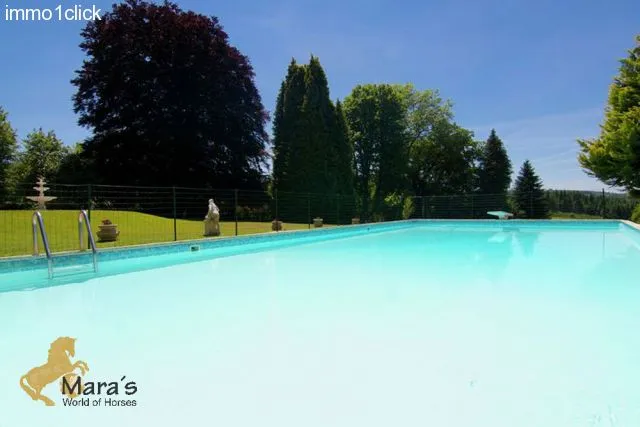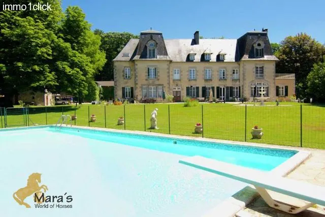 Rodeada de un parque con magníficos jardines se encuentra la espléndida piscina climatizada de 12 x 6 metros con terraza y confortables hamacas. El castillo es la ideal casa para una gran familia pero también tiene un gran potencial económico como chambres d’hôtes y apartamentos turísticos. Se vende el castillo amueblado con excepción de las cosas particulares del propietario. El propietario ofrece financiación parcial.